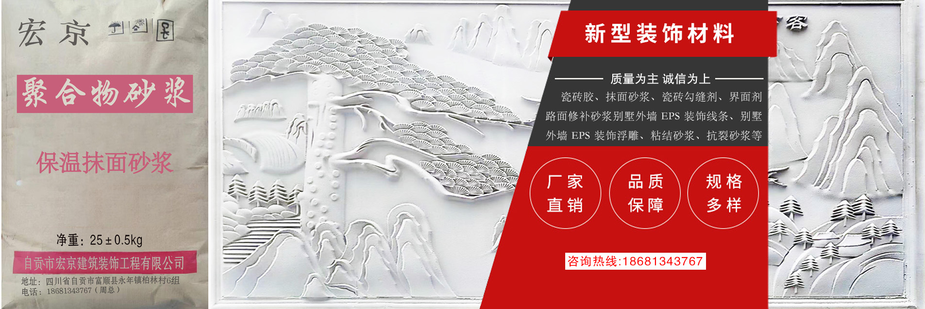 自貢市宏京建筑裝飾工程有限公司,成立于 2018 年,廠房位于位于四川省自貢市富順縣永年鎮(zhèn)柏林村 6 組柏林村小。本公司集保溫材料聚合物改性水泥基砂漿材料研發(fā)、生產(chǎn)、銷售于一體的干粉砂漿材料公司。 公司基于低碳、環(huán)保、綠色、節(jié)能的經(jīng)營理念,生產(chǎn)推廣高效、節(jié)能、環(huán)保的新型保溫材料等產(chǎn)品。本公司 產(chǎn)品具有質(zhì)量優(yōu)良、良好技術(shù)、精湛工藝、成本低等優(yōu)勢。公司成立以來,一直視產(chǎn)品質(zhì)量為企業(yè)的生命, 堅(jiān)持“質(zhì)量為先,顧客至上”的服務(wù)宗旨,贏得了客戶的信賴,并建立了完善的售前售后服務(wù)體系,歡迎各 界來
